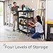 FOUR LEVELS OF STORAGE: This is not your average utility cart. With four levels of shelving, this storage cart is one of the largest (and most durable) on the market, easily organizing all your workspace essentials while on-the-go.