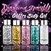 🔥4 Bottles Of Different Colors:Chunky glitter and UV body paint and be sure to stand out from the crowd.The color and luster of laser sequins vary with the angle of view.There are 4 colors in this set,you can get silver/rose/blue/yellow glitter.