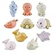 CUTE SEA ANIMAL BATH TOYS: Including turtle, octopus, whale, shark, starfish, dolphin, starfish, frog and crab, marine theme, recognize animals, promote children's language development. Kids enjoy their bath time with it!