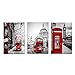 【✅The Home Canvas Art Painting Size】3 panel canvas prints describe Black and White Red London Buses Red Telephone Booth Picture wall art home decor picture, 16''Wx24''Hx 3 Panels (40x60cmx3pcs) .