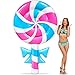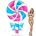 AMENON Giant cute lollipop printed pool float. Inflated size is 79 x 46 x 9 inch (Length x width x height). Designed to hold 1 adult or 2 kids, no more than 220 lbs.Including 2 repair patches as standby.