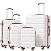 3 piece luggage set 20 inch,24 inch,28 inch upright, can be stored one into another.100% ABS, Lightweight yet extremely durable abs material.