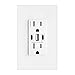 Receptacle rating: 15A, 125VAC. Back and side wired for easy installation. Not for switched outlets. Two 1-gang standard decorator wall plates included. UL-listed
