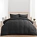 Soft microfiber fabric with plush polyester comforter fill; comfortable weight for all-season use