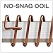 Perforated sheets detach easily; a no-snag coil resists catching on papers or clothing