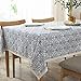 Premium Material: This durable tablecloth is made of premium cotton linen texture fabric which is more wrinkle free and shrink-proof than other materials, and ensure the protection of your table and furniture. Tablecloth measures 55" Width x 86" Length (140 x 220 cm), includes tassel length, size deviation is between 1 to 2 inch. Fits tables that seat 6-8 people.