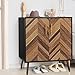 🕶【Mid Century Modern Design】The accent cabinet features a unique two-tone design. The cabinet is black, and the sliding doors are woven in a herringbone style, rustic wood grain highlights the texture of the furniture. The gold metal door handles are the finishing touches, showing uniqueness and extraordinary taste. This black storage cabinet has a special waterproof coating, making it easier to clean and last longer
