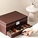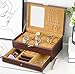 [2 Layers, Large Capacity] The top layer with 12 slots offers a cozy home for your watches with a dial size up to 48 mm, and a bottom drawer with various areas offers extra space for your necklaces, rings, earrings, and more