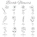 12 Birth Month Flowers & 12 Common Flowers - Choose the flower of the birth month or just the one your like. 12 birth month flowers: snowdrop, violet daffodil, sweetpea, lily, rose, larkspur, poppy, morning glory, marigold, chrysanthemum, poinsettia. 12 common flowers: sunflower cherry blossom, lotus, dandelion, daisy, iris, peony cosmos, forget me not, carnation, tulip, baby's breath.