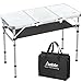 【Stability & Waterproof】The entire frame of the camping table is made of thicker aluminum alloy, which is very solid and durable. MDF (Medium Density Fiberboard) tabletop is smooth and easy to clean. This allows any spills or messes to be cleaned easily.