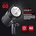 👍【Interchangeable Flash Heads】Interchangeable bare bulb flash heads and Speedlite-Styled Fresnel Head, fast recycle time up to 0.01-1.8s, with speedlite flash head, flash duration up to 1/220-1/15380 seconds ,with Bare bulb flash head, Flash Duration up to 1/220-1/13510.
