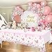 Package includes: 1pc 5x3ft birthday backdrop,1pc 42.5x70.8in tablecloth,18pcs 12in balloons,1pc cake topper and 12pcs cupcake topper,perfect for girls princess themed parties;