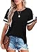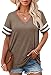 ✦Designs: Classic V Neck T Shirts for Women, Color Block Striped on the Short Sleeve Tops, Loose Fit Basic Tee Shirts,Summer Tops for Women. The Simple Shirts is Casual Chic and Never out of Date.