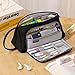 【Large Capacity】Dimension: 9.06” x 3.74” x 1.77”, it can store almost all your stationery such as pens, pencils, highlighters, sticky notes, rubber, rulers, erasers, scissors and other supplies, and they can stay tidy in different compartments in the bag whether big or small items, you can organize your stationery to you liking!