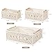 3 Piece Macrame Storage Baskets Set: 1 large basket measuring 12.4" x 9.4" x 3.7" and 2 small baskets measuring 7.9" x 5.5" x 3.5".