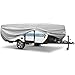 WINDPROOF & SNUG FIT - Adopted 3 PCS extra long side straps and 1 PC front strap panel to providing secure coverage. Adjustable front and side tension panels and elasticized hem corners provide a custom fit. Protecting your folding camper cover from blowing off in the gale.