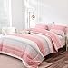 【Elegant Design】The Pink and Grey stripe pattern with 3 color patchwork on this bedding comforter set conveys a modern minimalist appeal that coordinates with various home decor styles, adding more aesthetic and coziness to your bedroom.