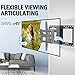 Upgrade Your Viewing Experience: Wall mount TV bracket makes viewing more comfortable. Tilts TV up 5° and down 15° to reduce glare, ±45° swivel and ±4° level adjustment for maximum viewing flexibility. Full motion TV mount with 6 articulating arms is capable with 16.6" extension and 2.5" retraction to wall.