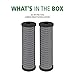 Includes 2-pack of replacement sediment filters. Fine carbon dust on the filters can be rinsed off or flushed.