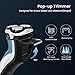 ➤ Pop-Up Trimmer: Easy one-touch open tab to quickly trim unwanted facial hair and skin-friendly for shave a sideburns, beard shapes, mustache in seconds.