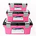 A TOOL BOX FOR EVERY NEED. Use them for tool storage, to organize craft supplies, small toys, fishing tackles, paints, pens, brushes, and more. The smaller box can even be used as a lunch box. The pink color is fun and attractive to bring anywhere.