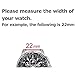 SELECT PROPER WIDTH: Compatible with any traditional or smart watch that uses 18mm, 19mm, 20mm, 21mm, 22mm, 23mm or 24mm spring bars. Measure watch lug where band and spring bar meet the watch casing. It is important that your watch's lug width is the exact width of the band you select or spring bars will not fit correctly. You can also find the specifications for most watches by searching online.