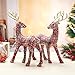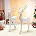 Set of 2 standing champagne gold glitter reindeer statues, perfect for christmas party decorations, look gorgeous in the winter scene with greenery & lights.