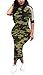 Casual camouflage print stripe round neck short sleeve slim fit sheath tshirt midi dresses