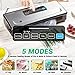 🍌Modes of Moist/Dry/Pulse/Seal/Canister/Stop - Multi-function automatic air food sealer support all your needs in kitchen sealing. Dry mode suit for beans, dry aged beef, sausage and food without water, will take 3-7s to vacuum. Moist mode apply for seasoned meat, will take 12-15s to vacuum. Pulse mode suit for fragile food, you can stop the vacuum any time by the food situation. This vacuum sealers with jar attachment external canister mode good for soup, salad,wine and so on.