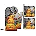 Halloween Pumpkins Pattern Oven Mitts And Pot Holders Sets Of 4 Piece Are Made Of Waterproof Polyester Fabric + Heat Insulation Material, Non-Slip, Thick And Durable