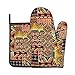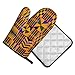 African Textile Patchwork Pattern Oven Mitts And Pot Holders Sets Of 4 Piece Are Made Of Waterproof Polyester Fabric + Heat Insulation Material, Non-Slip, Thick And Durable