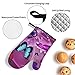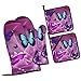 Purple Butterflies Pattern Oven Mitts And Pot Holders Sets Of 4 Piece Are Made Of Waterproof Polyester Fabric + Heat Insulation Material, Non-Slip, Thick And Durable