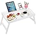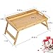 Bed Tray Table with Handles Folding Legs Bamboo Breakfast Tray with Phone Tablet Holder,Foldable Breakfast Table, Laptop Desk
