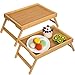 Foldable Breakfast Table Tray made of durable bamboo material, handles to carry everywhere easily,eating tray's legs foldable for easy to storage