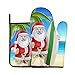 Design Description: Santa Claus With The Beach And Surfboard Printed Oven Mitts And Pot Holders Sets Have Fine Workmanship, Thick And Durable, Anti-Scald And Heat Insulation. Silicone Ensures Greater Safety When Handling Hot Cookware. The Hook At The Side Can Be Placed And Stored More Conveniently, It Is A Good Kitchen Helper.