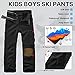 MATERIAL: Boys snow pants with High-level Water repellent soft shell surface layer; Mid layer stretch quick dry breathable fabric; inner layer high-end fleece. Keep you dry and warm