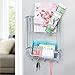 SIMPLE STORAGE: Wall mount mail holder with large and small storage baskets and 5 key hooks for organizing mail, letters, newspapers, magazines, catalogs, keys, leashes hats, jackets, coats, purses, umbrellas, bags and more
