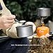 More Details. 42mm large diameter for the kettle mouth for easily water injection. The scale is clear and wear-resistant. Foldable handle design for easily folding and storage. Layered storage saves space and convenient to carry. All mess kit set could be put into the pouch, compact, lightweight but sturdy. Suitable for the person who don't want to carry a lot of excess weight when go camping or backpacking.