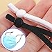 PACKAGE: 100 pieces elastic Buckle band in pack. There are two color(50 pieces Black adjustable elastic string for masks and 50 pieces White adjustable elastic string for masks) . The rope width is 1/5inch(5mm). After folding Length is 10 cm/4inch.