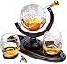 COMPLETE LUXURY WHISKEY KIT - The Atterstone Whiskey Globe Decanter Set includes a 850ml (28.7oz) whisky Globe etched decanter showcasing an elegantly glass sculpted ship, 2 heavy based lowball glasses, 9 whiskey chilling stones, funnel and wooden stand all packed in a gorgeous gifting box. This whiskey gift set is the perfect addition to any home bar, office, study or kitchen.