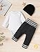 👶【Unique design】baby clothes boy long-sleeved clothes suit, 0-3 months baby boy clothes long-sleeved one-piece romper with snap diaper closure button, easy to change diapers, matching bottom stitching striped trousers and striped hat, unique and fashionable design, make your The child is more dazzling in the crowd.