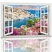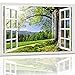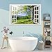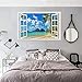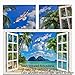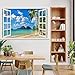 3D Removable window picture:The wall sticker with open window design,Creative window view with blue sky, white clouds,sea,beach,tropical trees,forest,rivers, looks like a real window,this is a good way to expand our sight,relax and beauty.