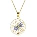 Pendant Detail: Handmade item; Pendant height: 30 MM; Pendant width: 22 MM; Materials: 14K Gold Plated over brass,Forget-me-nots flower,Queen Annes lace, resin,gold flakes.Chain Detail:Stainless Gold Plated 18 inches and is perfect for everyday wear.