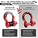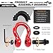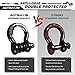 New Innovative Design for D-Ring Shackles on Recovery Kit: Two 3/4-Inches D Shackle with 7/8 Inch Pin and SAFETY CLIP to protect against LOSING AND ACCIDENTALLY UNSCREWING. Red Silicone Isolators to prevent scratching when mounted. Drop Forged Steel and plated with a zinc coating for corrosion resistance heavy duty d ring, rated at 9,500 lbs. Recommended loading capacity. Black d ring winch shackle recommended by professionals, built to resist any kind of harsh conditions.
