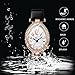 ✼【EASY TO READ】Bright white dial with analog display, easy to read. Features: calendar, rhinestone bezel, oval case, large numerals, curved glass, leather strap.