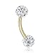 Catching and reflecting light, this sparkling eyebrow barbell is a versatile choice she can pair with anything. Crafted in 016-gauge 10K Yellow Gold, the curved look is capped on each end with 4mm white Swarovski Elements crystal balls - creating the design's closure. It measures 15.5mm in length.