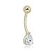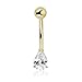 Simple yet sparkling, this belly button ring is just your style! Fashioned in warm high polished 10K gold, this sophisticated style features a shimmering pear-shaped Simulated Diamond Cubic Zirconia (CZ) accent. This 014 gauge belly button ring secures with a golden ball closure. It measures 23mm in length and 5mm in width.