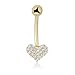 Fashioned in 10K yellow gold, this style features a heart pave-set in Simulated Diamond Cubic Zirconia (CZ). This 014 gauge belly button ring secures with a golden ball closure and it measures 23mm in length and 9mm in width