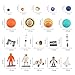 Space Planet Exploration Kit: you will get 9 planets in the solar system, 2 astronaut figurines, 1 chimpanzee figurines, 1 manned lunar rover, 1 apollo, 1 sputnik, 1 space shuttle, 1 hale telescope, 1 space capsule, 1 saturn spaceship, enough figurines for you to explore the mysteries of the fantasy universe