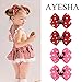 Great value -32pcs 2.75 inches metal baby hair clips, available in 16 colors. Ayesha hair bows are Sparkly and stylishly! Carefully hand-sewn, pressed, tied with great care and attention to detail, ensuring they are soft, flexible, light and durable. Your little girl will hardly know the bow clip is there!